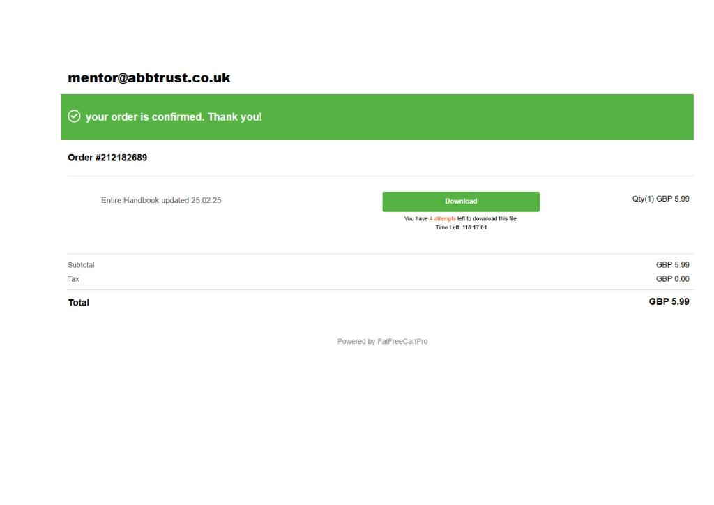 3. An email from Mentor@abbtrust.co.uk providing the download link for your Handbook. Simply click on the link and download to your device.